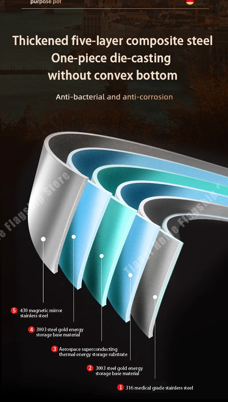 • 7 Ply Steel Skillet :The 7 ply steel skillet design offers superior strength and longevity, making it a perfect choice for professional chefs and home cooks.