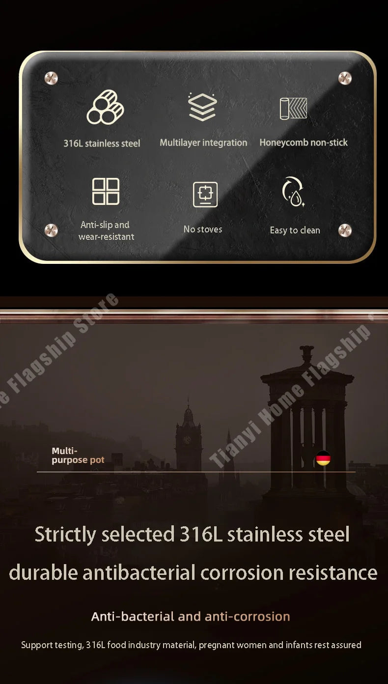 • 316 Stainless Steel Construction :Crafted from high-quality 316 stainless steel, this frying pan offers superior durability and resistance to rust and corrosion, ensuring long-lasting performance.