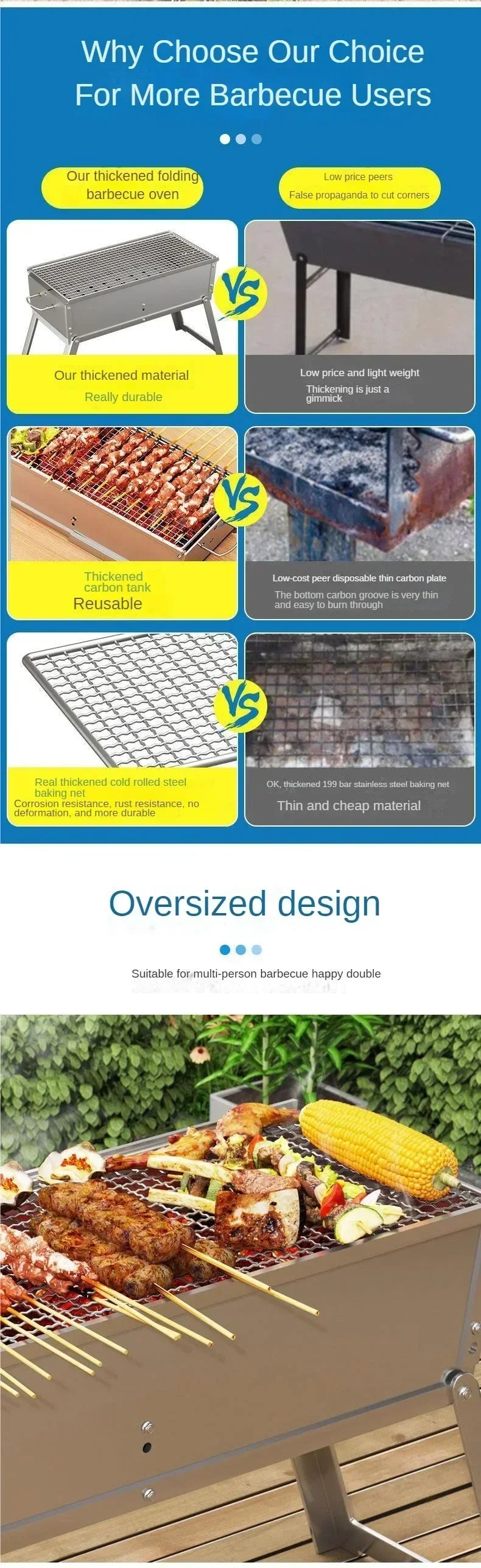 Stainless Steel Wood-Burning BBQ Grill for Camping Picnic BBQ
